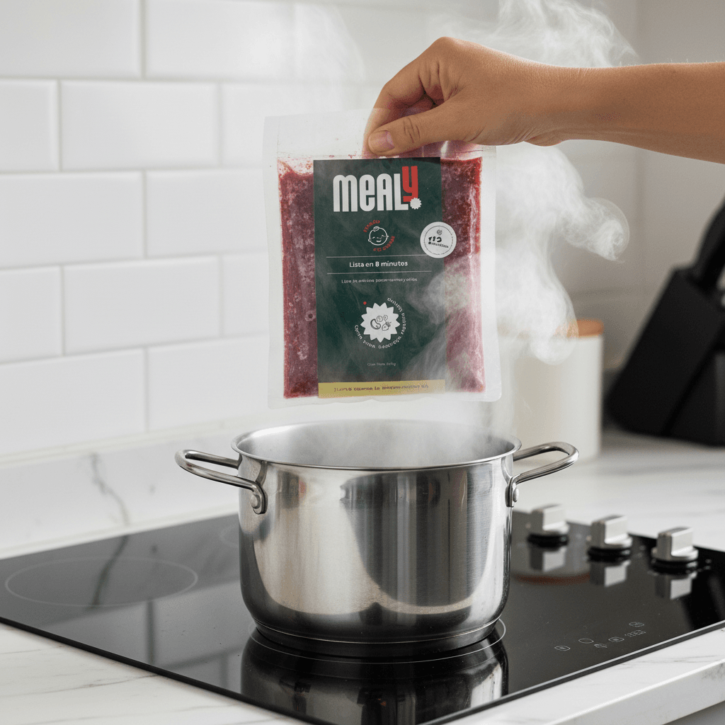 MEALY nació de una urgencia real: en un viaje familiar no encontramos una opción sana y confiable para nuestra guagua. Al volver a Chile confirmamos el mismo problema y decidimos cocinar como en casa para más familias: ingredientes que se entienden, sin conservantes ni sal añadida, ultracongelados para mantener nutrientes y sabor, listos en minutos.