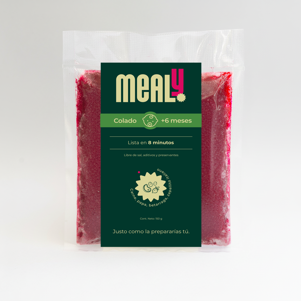 El Colado de Carne MEALY es una comida natural, congelada y especialmente pensada para bebés desde los 6 meses en adelante. Elaborado con carne de vacuno, papa, betarraga, zapallo italiano y aceite de canola, ofrece una opción equilibrada, sin sal añadida, sin preservantes y libre de aditivos.