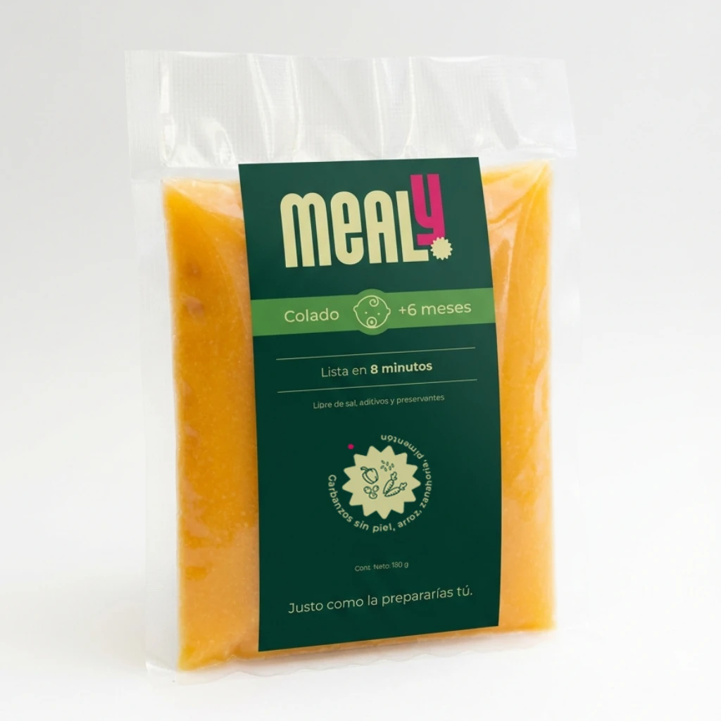 El Colado de Garbanzos Mealy es una comida natural, pensada para bebés desde los 6 meses. Sin preservantes, sin sal, sin aditivos y elaborado con ingredientes 100% reales: Garbanzos sin piel, arroz, zanahoria, pimentón rojo, zapallo, cebolla, ajo y aceite de canola.