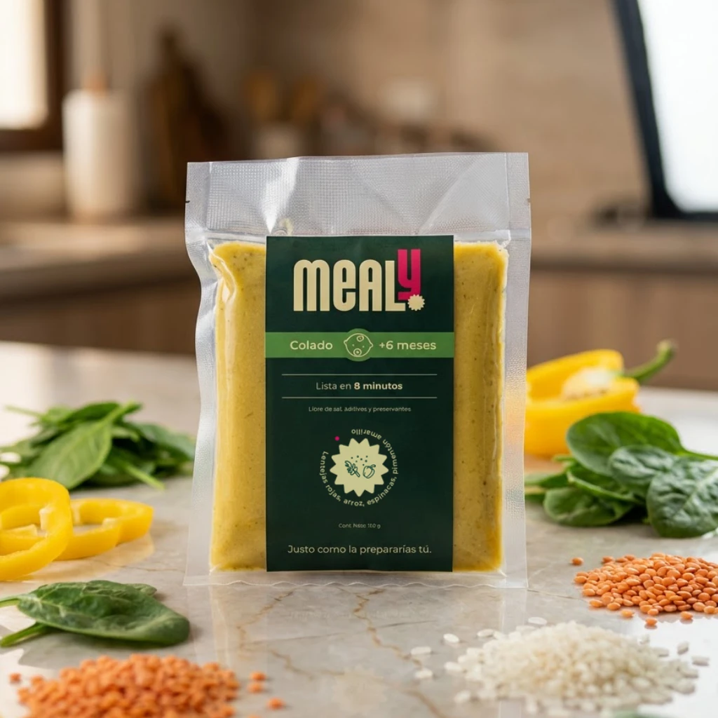 El Colado de Lentejas Mealy es una comida natural, pensada para bebés desde los 6 meses. Sin preservantes, sin sal, sin aditivos y elaborado con ingredientes 100% reales: Lentejas rojas, arroz, zanahoria, pimentón amarillo, espinaca y aceite de canola. Perfecto para padres que buscan una alternativa rápida, nutritiva y de calidad, manteniendo siempre el sabor y la frescura, en un formato de 150 gramos.