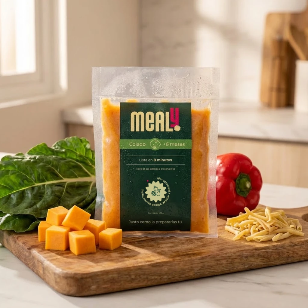El Colado de Pollo Mealy es una comida natural, pensada para bebés desde los 6 meses. Sin preservantes, sin sal, sin aditivos y elaborado con ingredientes 100% reales: Pollo, fideos, zapallo, pimentón rojo, acelga y aceite de canola. Perfecto para padres que buscan una alternativa rápida, nutritiva y de calidad, manteniendo siempre el sabor y la frescura, en un formato de 150 gramos.