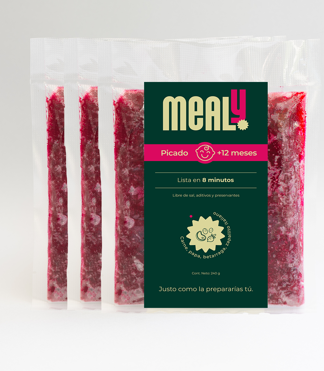 El Picado de Carne Mealy es una comida natural, pensada para bebés desde los 12 meses. Sin preservantes, sin sal, sin aditivos y elaborado con ingredientes 100% reales: Carne de vacuno, papa, betarraga, zapallo italiano y aceite de canola.