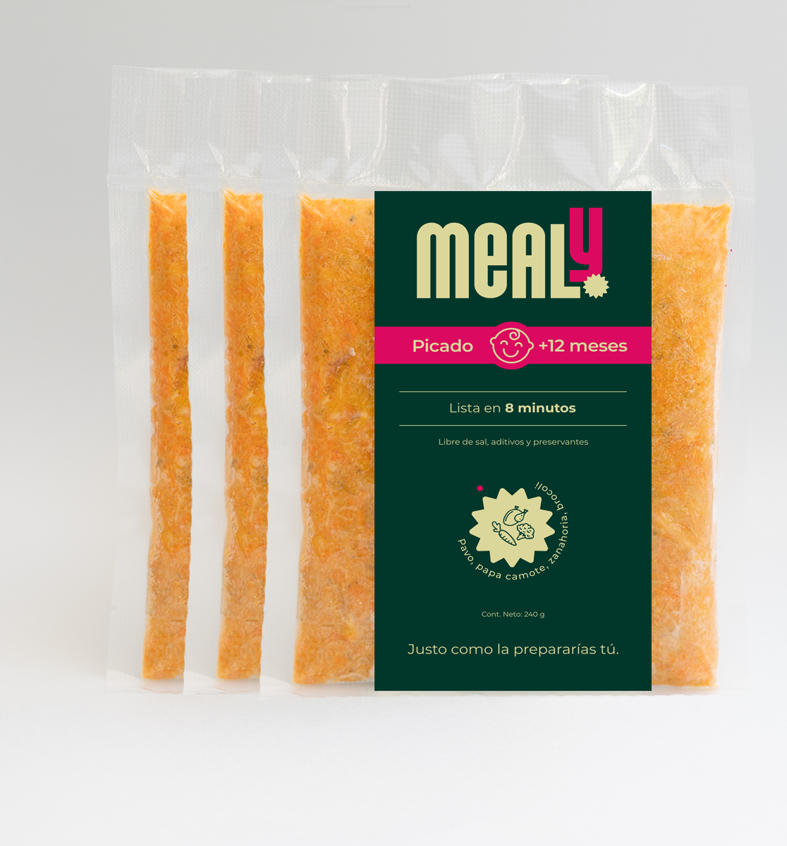 El Picado de Pavo Mealy es una comida natural, pensada para bebés o niños pequeños desde los 12 meses. Sin preservantes, sin sal, sin aditivos y elaborado con ingredientes 100% reales: Pavo, papa camote, zanahoria, brócoli y aceite de canola. Perfecto para padres que buscan una alternativa rápida, nutritiva y de calidad, manteniendo siempre el sabor y la frescura, en un formato de 240 gramos.