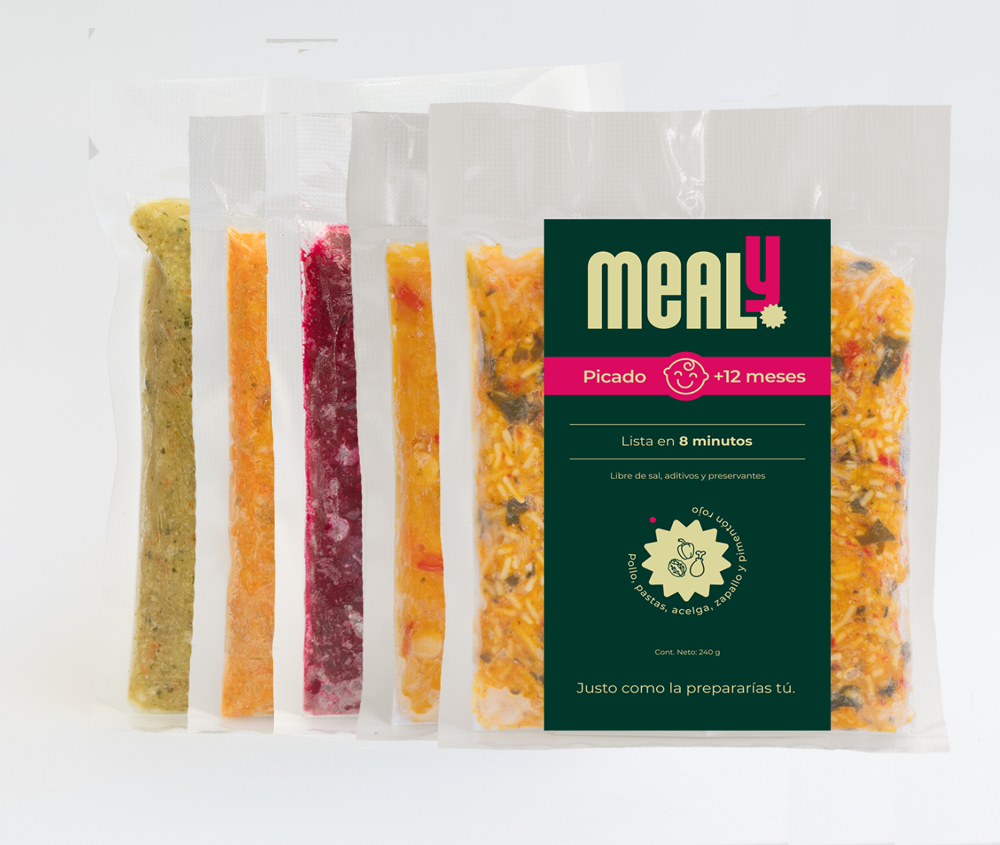 Los Picados de Mealy son comida de casa, pensada para niños pequeños desde los 12 meses. Sin preservantes, sin sal, sin aditivos y elaborado con ingredientes 100% reales.