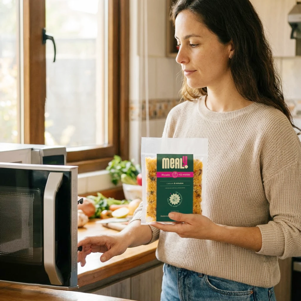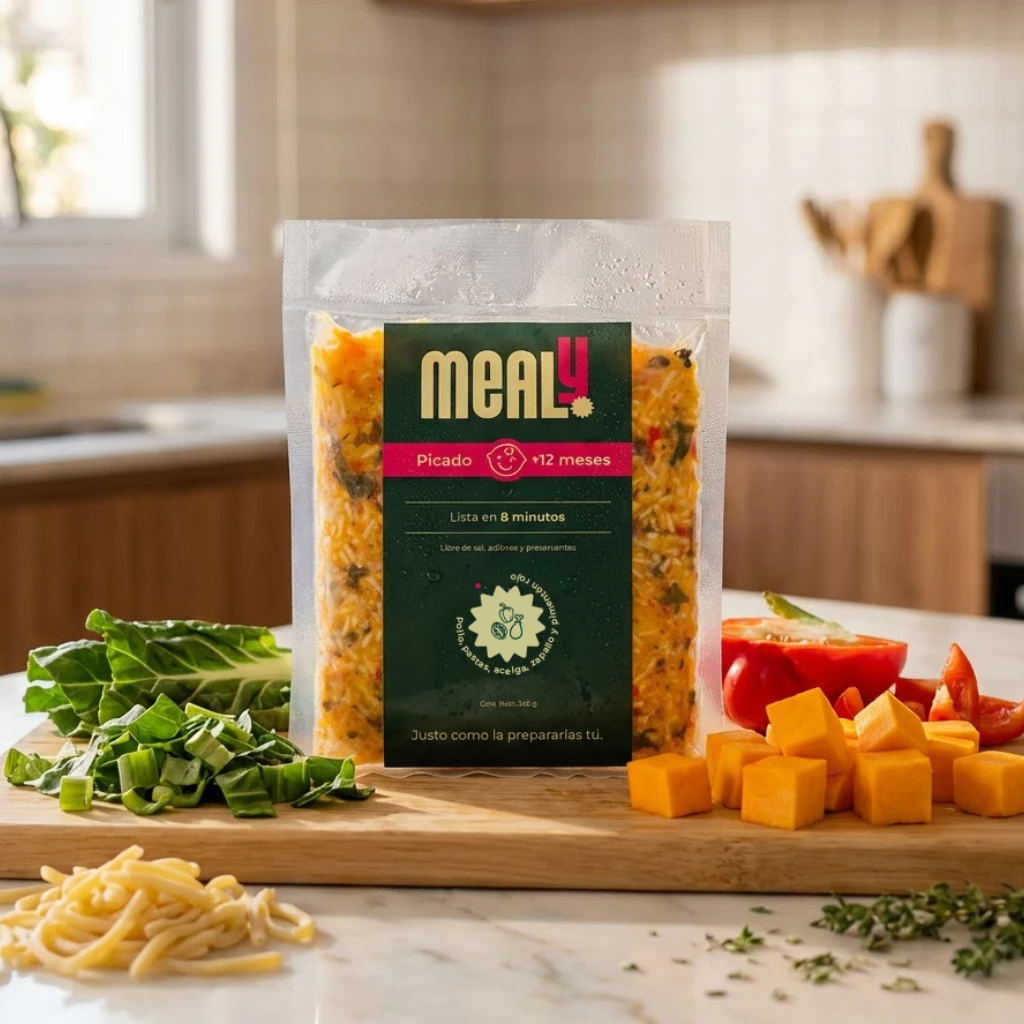 El Picado de Pollo Mealy es una comida natural, pensada para bebés o niños pequeños desde los 12 meses. Sin preservantes, sin sal, sin aditivos y elaborado con ingredientes 100% reales: Pollo, fideos, zapallo, pimentón rojo, acelga y aceite de canola. Perfecto para padres que buscan una alternativa rápida, nutritiva y de calidad, manteniendo siempre el sabor y la frescura, en un formato de 240 gramos.